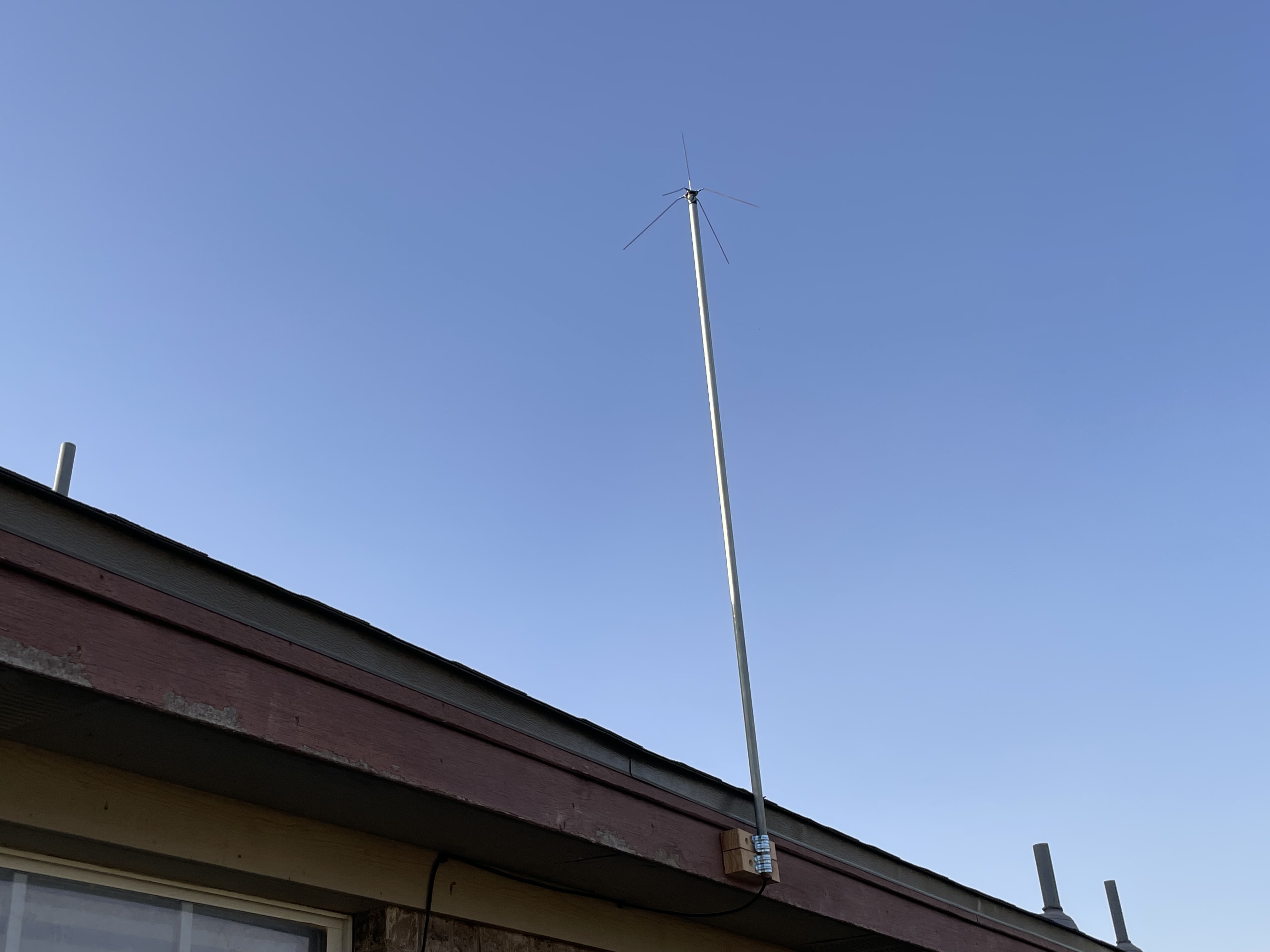 Now onto the bad that has happened over since June, something happened to the antenna. Well a couple somethings actually. The first being that the PLA mount that I 3D printed started to sag a little under the brutal Texas sun. This wasn't really surprising at all. I went with PLA more as an experiment to see how it would hold up, as well as not having the best results with ABS at the time. A little sagging was expected. Something else happened to the antenna though, and this was quite unexpected. I don't know how, but one of the radials managed to get bent at about a 45 degree angle up! Not sure if this was a bird or wind or possibly even a rogue sasquatch or toddler.